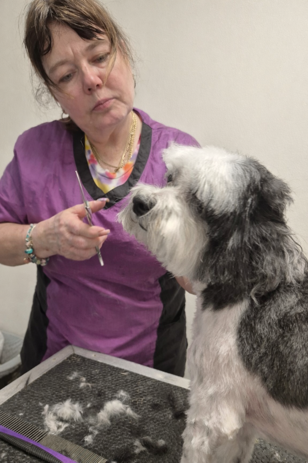 Denise started bathing pets at the Fuzzy House in October of 2021. Starting in February of 2025 she began to learn the grooming process. Combining her passion for loving animals, her creativity, patience, and attention to detail, she is progressing well in her apprenticeship!